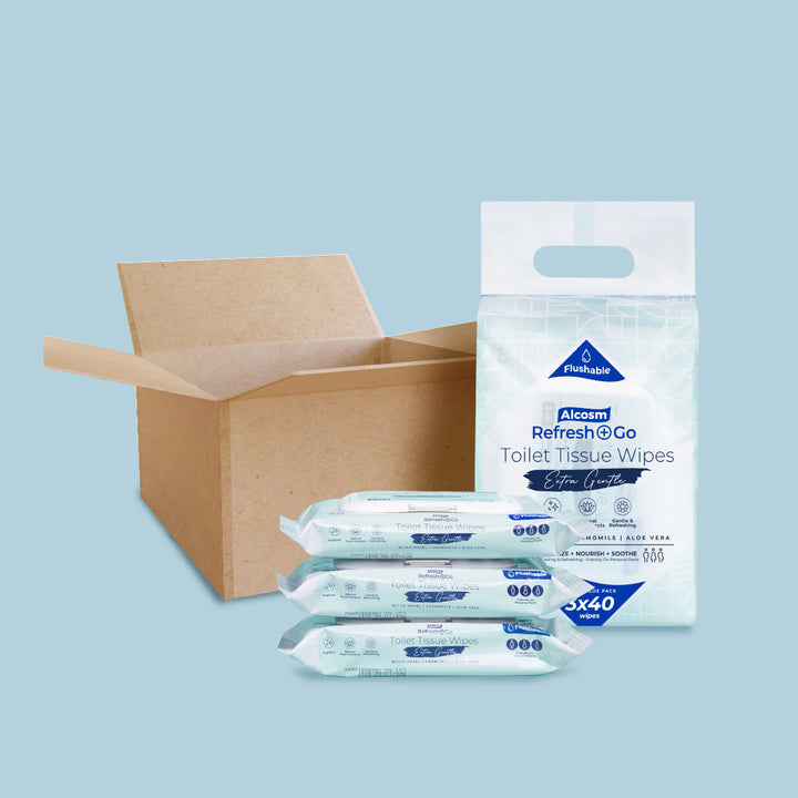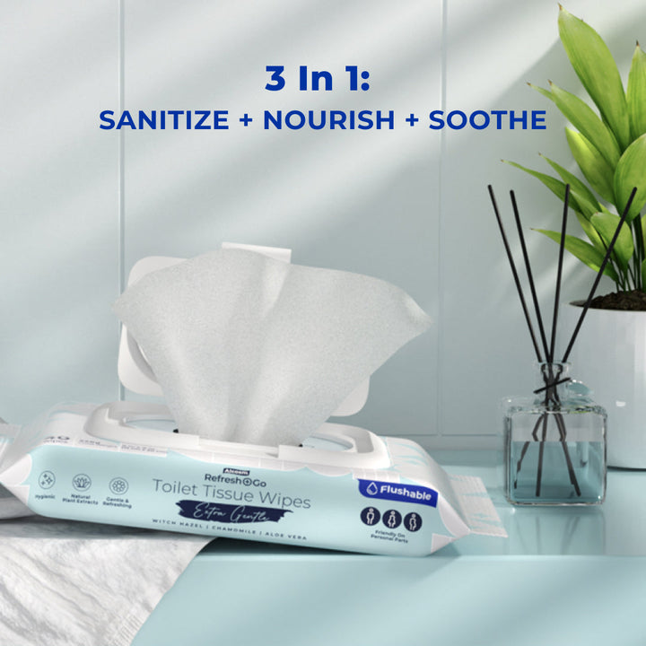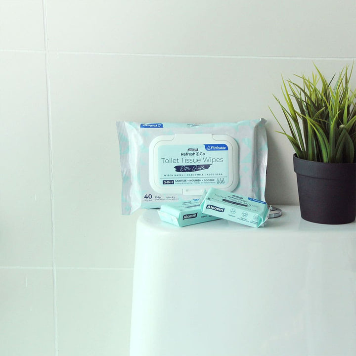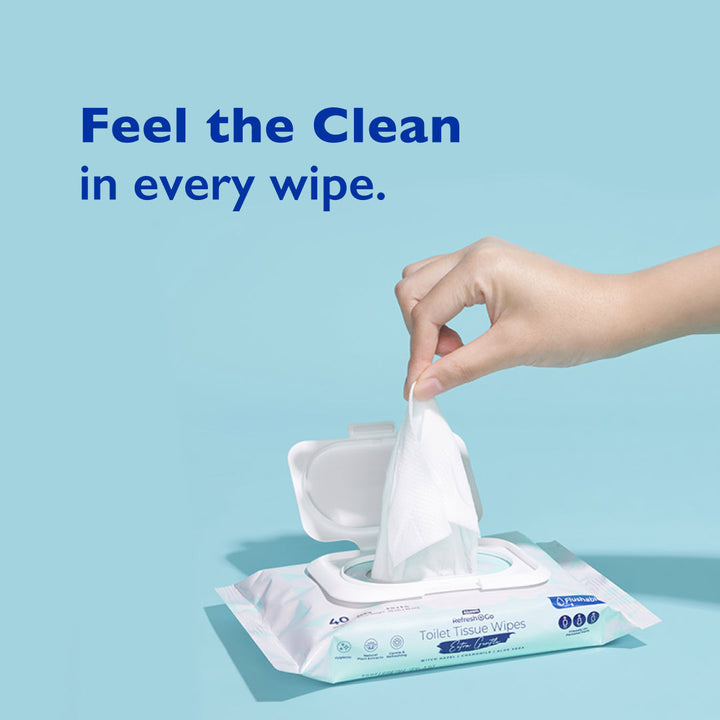 Toilet wet wipes to keep your bottoms not only clean & sanitised but also nourishing to the skin! Made with pH-balanced formulation, it is safe and gentle to use daily on your personal parts. Infused with our secret ingredient, Witch Hazel to give your skin with a cooling and refreshing sensation. Just like toilet paper (but even better!), these wipes are flushable hence just flush them down the toilet after wiping. It's that simple!
